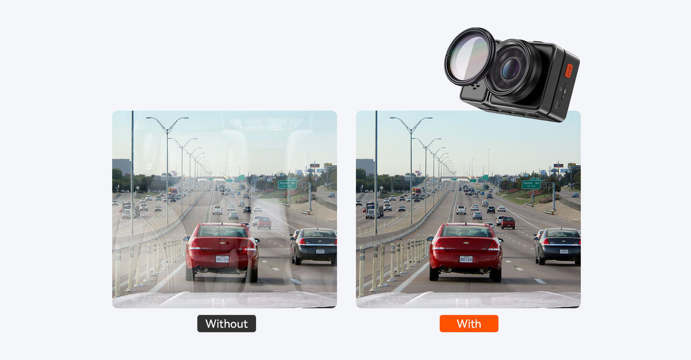 The Vantrue CPL Filter reduces glare and reflections in bright daylight and enhancing video clarity (CPL sold separately).