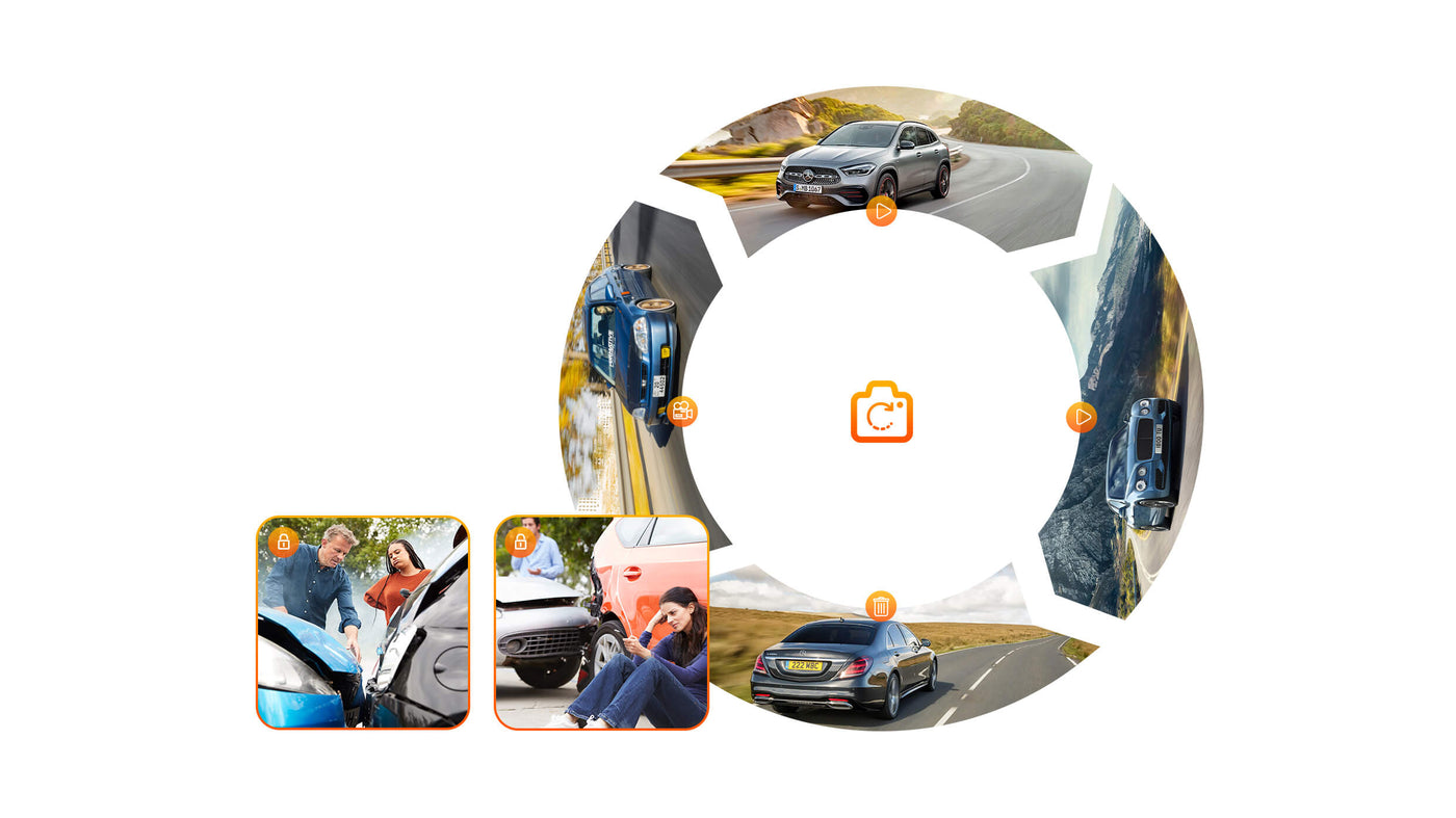 Loop recording ensures that the dash cam automatically overwrites the oldest videos when the SD card is full, allowing it to continue functioning without interruption. Meanwhile, the built-in G-sensor automatically preserves critical videos in the Event File to prevent them from being overwritten.