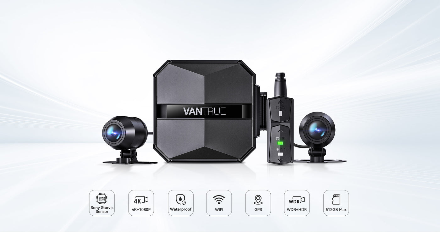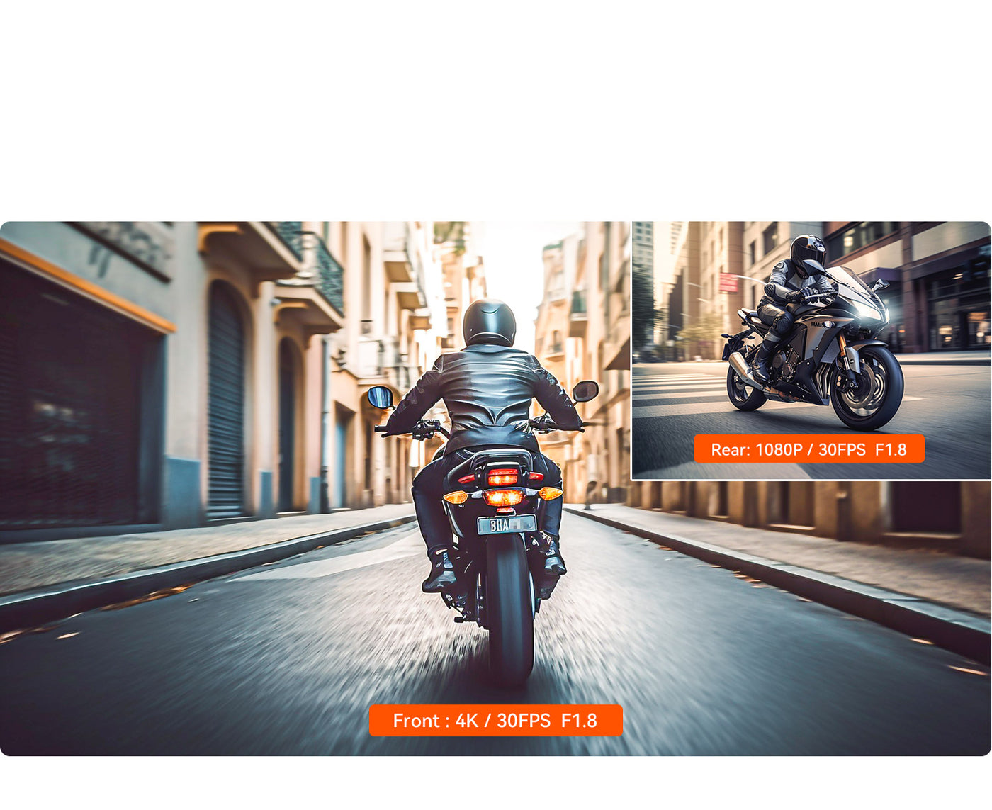 Dual 4K+1080P Motorcycle WiFi Dash Cam