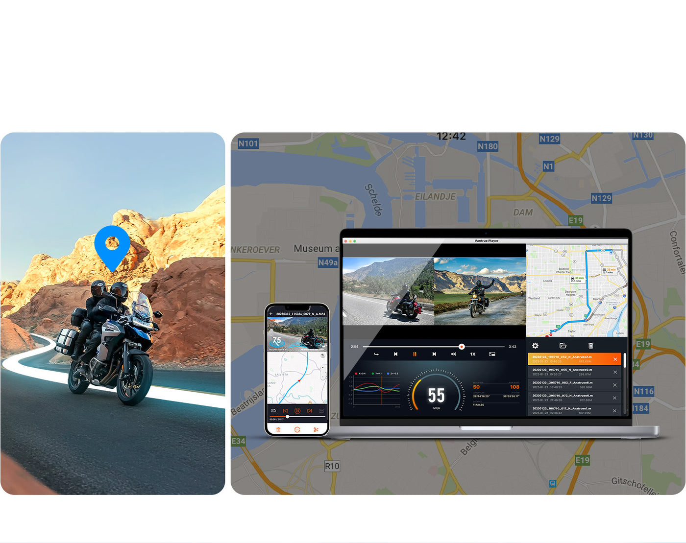Equipped with a GPS module, F1 can accurately record the Motorcycle's position (latitude and longitude), driving speed, and route, which you can view on your smartphone or computer.