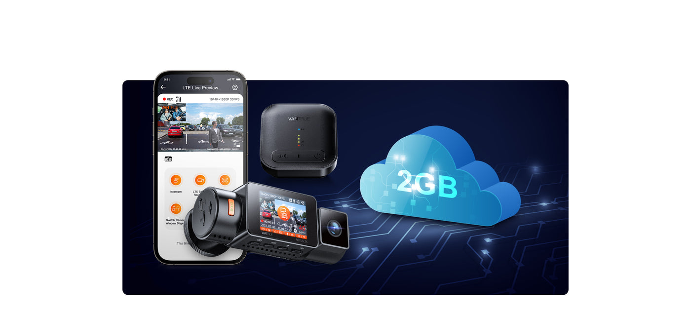 With LT01 LTE Module, Vantrue dash cam can turn into a Wi-Fi hotspot, supporting connecting up to 5 devices simultaneously for accessing the internet.