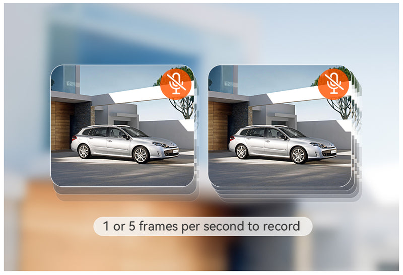 This parking mode allows your dashcam to continuously record at 1FPS (one frame per second). Videos are played back at 30FPS. Each 1-minute Time lapse Parking Mode video covers a real-time period of 30 minutes. Please note: camera won’t record sound in this mode.