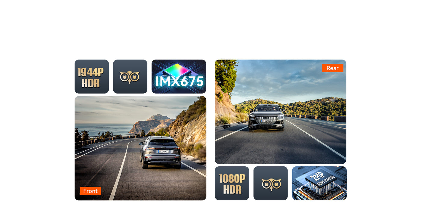 The front camera is powered by Sony STARVIS 2 IMX675 5M Ultra-low light sensor and rear camera uses 2MP SONY Starvis Night Vision sensors, it can record up-to 1944P at front and 1080P at rear, capturing the smallest details.