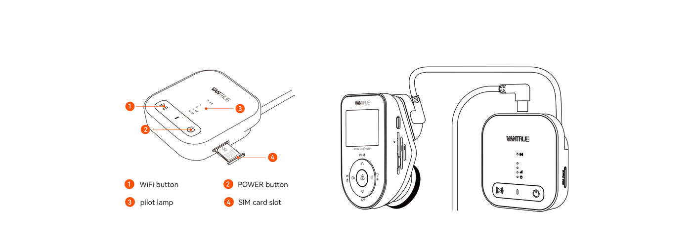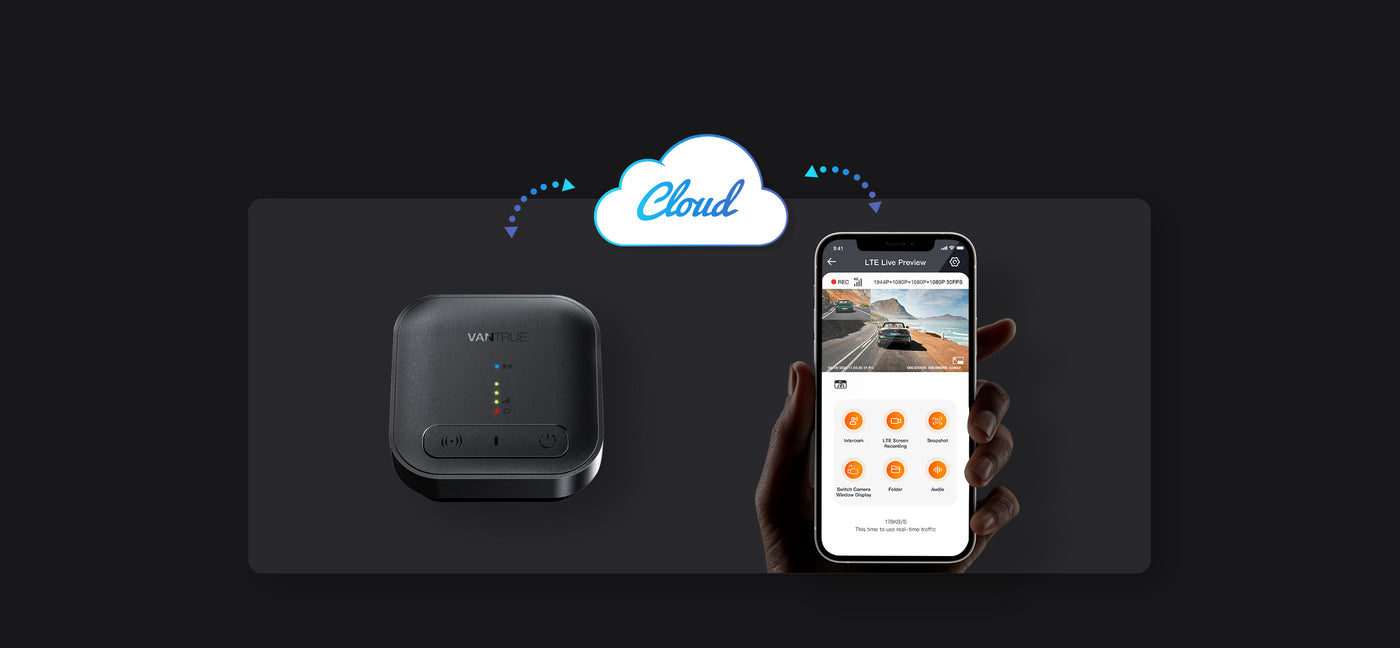 Add LTE SIM card to your Vantrue and turn your dash cam into a Wi-Fi hotspot. Up to 5 devices.